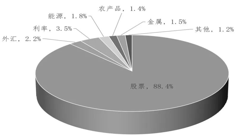图为2024年上半年全球各类产品期货与期权成交量分布