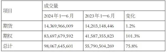 表为2024年上半年全球期货与期权成交量统计(单位:手;单边)