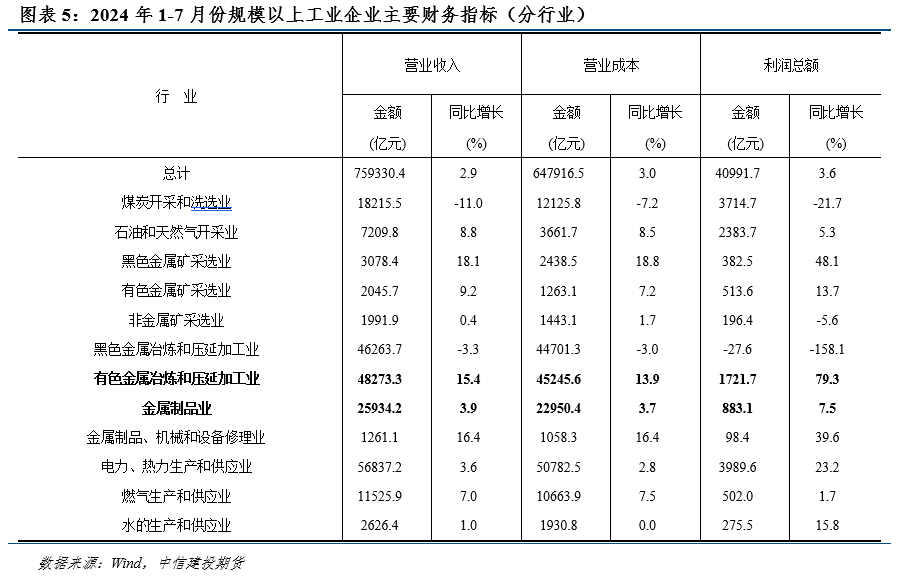 通过观察行业利润去剖析产业链现状。官方公布的1-7月份有色金属冶炼和压延加工业利润同比增长79.3%,上半年上游端利润区间处于历史高位。下游金属制品业同比增7.5%