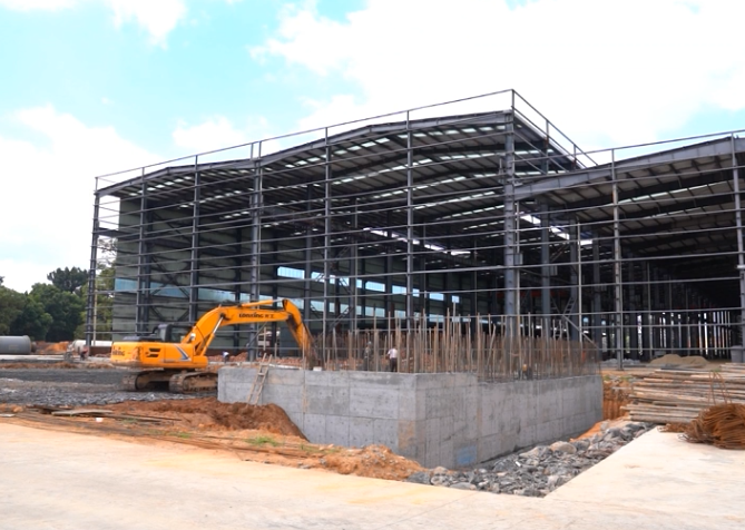 项目经理谢建军称,土建工程将完工,设备正在安装,罐区基础正在建设。双班组赶工,预计十月试产。