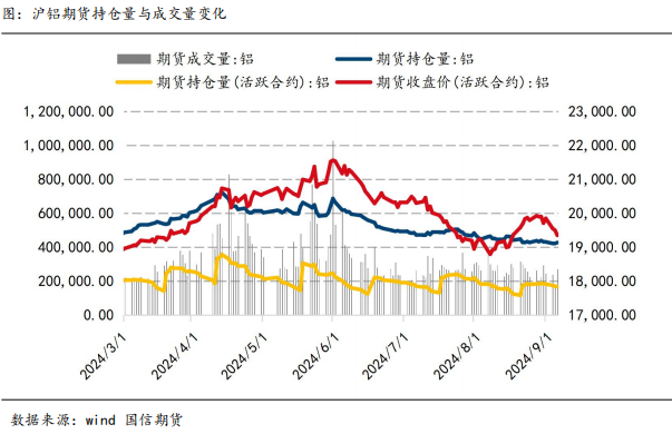 自8月初起,宏观面交易降息预期,市场风险偏好有所回暖,有色金属板块呈现出反弹态势,沪铝价格重心也逐渐上移,并在8月28日盘中突破20000元/吨关口。但此轮反弹也在8月底戛然而止,8月28日后,铝价走势出现转折,并再度呈现弱势运行。