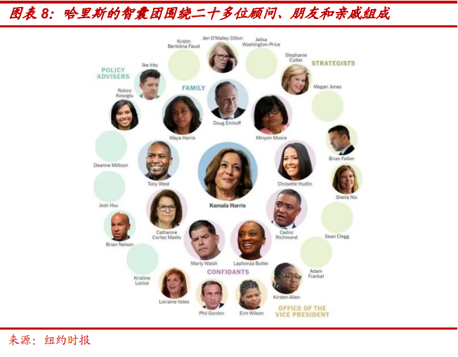 同理,假设哈里斯胜选的情况下,当前市场的主流分析,基于哈里斯得到了拜登的全力背书和支持,民主党由于临时“换帅”,竞选纲领也基本继承拜登的政策等,对哈里斯政府政策的分析认为,其将是过去四年“拜登路线”的延续。而我们则从以下三个重要的观察出发,认为:其若当选更大概率将拥抱甚至推进奥巴马时代的民主党激进路线,而非拜登的温和、中间路线。