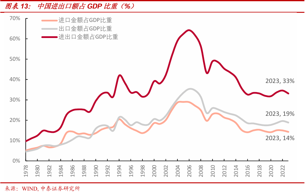而就国内政策而言,十九大之后政策的重心在安全与效率间的权衡,是政策阶段性调整和变化的最重要考量,而外部整体地缘环境的变化又是这种政策重心阶段性调整的最重要背景。我们在《若特朗普当选将带来哪些影响》中提出:与12-18年总量政策上重视需求侧刺激,产业政策上重视互联网为代表的现代服务业的传统以GDP为中心经济政策框架相比,2018年之后总量政策上对于需求侧刺激始终保持定力超预期,产业政策全部重心在于新质生产力、“卡脖子”、“硬科技”等与国家安全与军备能力密切相关的高端制造业。这种经济政策框架的根本性变化与2018年特朗普政府所主导的中美贸易战引发的全球地缘不安全显著加剧是密切相关,故如果特朗普再次当选,由于其权力的更加不受制约性及无视国际秩序基本原则对全球地缘带来的“惊涛骇浪”,国内政策的转向方向将是进一步注重安全,而非市场所预期的刺激。”