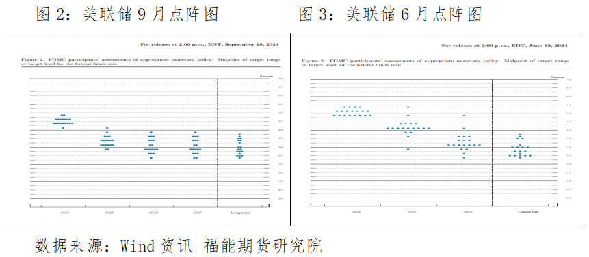 美联储将联邦基金利率下调50个基点至4.75%~5.00%,这是美联储四年来首次降息。政策声明显示,通胀虽已向2%目标取得进一步进展,但仍处于“略高”水平,就业和通胀目标面临的风险处于平衡状态。9月点阵图显示,美联储预计今年还会降息50基点。在会后新闻发布会上,美联储主席鲍威尔的表态并未提供强力的鸽派信号而是对继续大幅隆息表示警惕,警告不要将大幅降息视为未来的常规节奏。