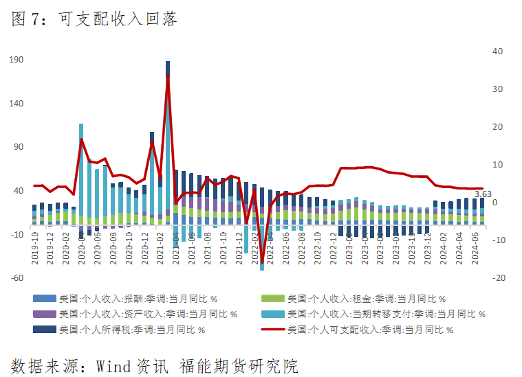 目前美国经济韧性主要来自于消费,而消费由可支配收入和消费者信心等因素影响。随着超额储蓄消耗殆尽,非农时薪增速降至4%下方,后续可支配收入增速存在边际下降可能,加之消费者信心指数未回升至疫情前水平,对消费支撑力度减弱。