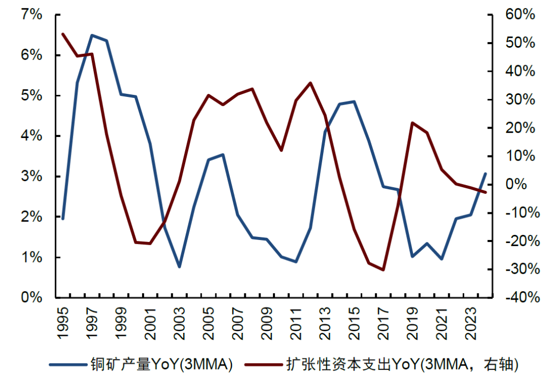 图表20:铜矿资本开支与产量(3MMA)