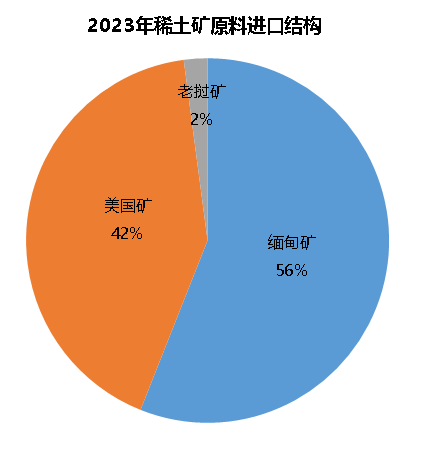 在稀土冶炼分离产品进口中,稀土氧化物和稀土化合物主要作为中间原料在我国进行进一步的冶炼分离加工。在其中,缅甸、老挝等东南亚国家生产的离子型稀土矿为主,成为了国内重要的稀土原料来源之一。