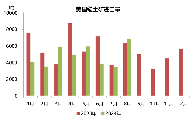 一、1-8月美国稀土金属矿进口量同比下降19.6%