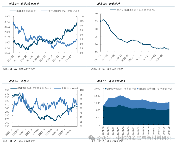 本周COMEX黄金价格+1.27%至2680.80美元/盎司,美债10年期TIPS上涨2个基点至1.60%。COMEX黄金库存增加25.622万金衡盎司到1718万金衡盎司;金银比下降至84.00;黄金ETF持仓减少3.45吨至1243.30吨。