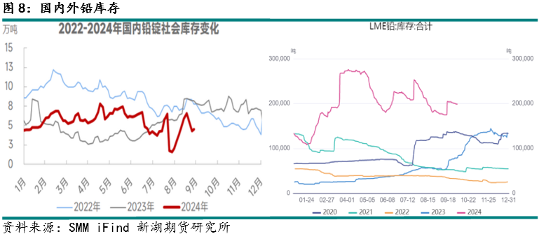 库存方面看,随着下游蓄电池企业备库结束,节前铅锭社会库存止降,SMM铅锭社会库存小增0.22万吨,至4.54万吨,交易所库存无明显增减。本周LME库存续降,一周减少2350吨至19.86万吨。