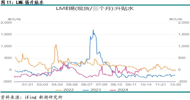 锡: 本周前期外盘锡价补涨,在国内外宏观利多刺激性创阶段性高位,后期在美元指数不断走强的限制下,涨幅放缓,此外前期缅甸佤邦有意恢复锡矿生产的消息仍有一度压力。不过当前供应偏弱的情况延续。本周LME锡现货合约升贴水大幅走强,一度转为升水44美元/吨,不过后期重回贴水状态,周五回落至贴水35美元/吨。