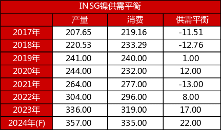 表4.2:全球精炼镍供需平衡表预估(INSG)