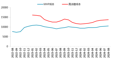 三季度冶炼品镍铁、电镍以及硫酸镍价格持续低迷,从矿端看,上半年由于印尼镍矿由于RKAB审批较慢,印尼镍矿内贸基价虽有下降,但升贴水表现坚挺,镍矿内贸价持续处于高位,利润持续集中在矿端;湿法冶炼中间品月度成本10500美元/金属吨上下,月均价在12850美元/金属吨,利润率在20%以上;高冰镍月度成本在13700美元/金属吨,月均下在14216美元/金属吨,利润率仅3.6%;国内镍铁当前价格976元/镍吨,国内多数镍铁厂处于亏损状态;不锈钢方面,当前不锈钢现货价格多集中在13500元/吨-13800元/吨,钢厂成本还在万四以上,钢厂处于亏损状态;硫酸镍当前报价27910元/吨,从生产原料来看,纯镍产硫酸镍持续处于亏损状态,MHP与高冰镍产硫酸镍相比,高冰镍持续具有性价比,当前高冰镍产硫酸镍处于盈利状态。