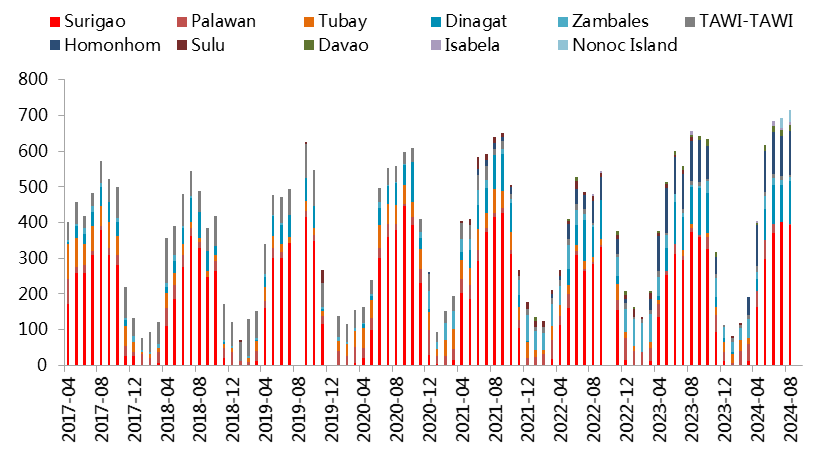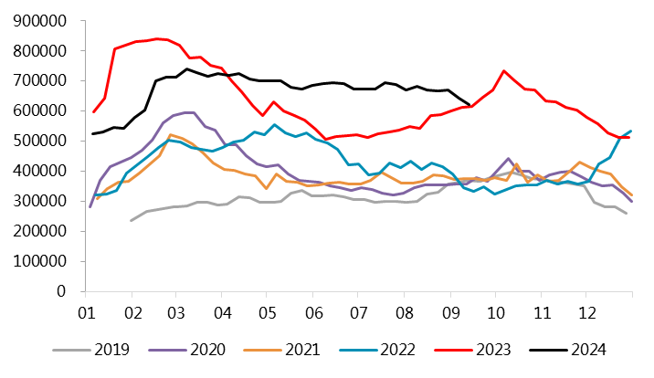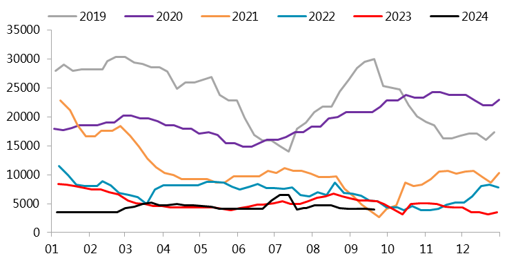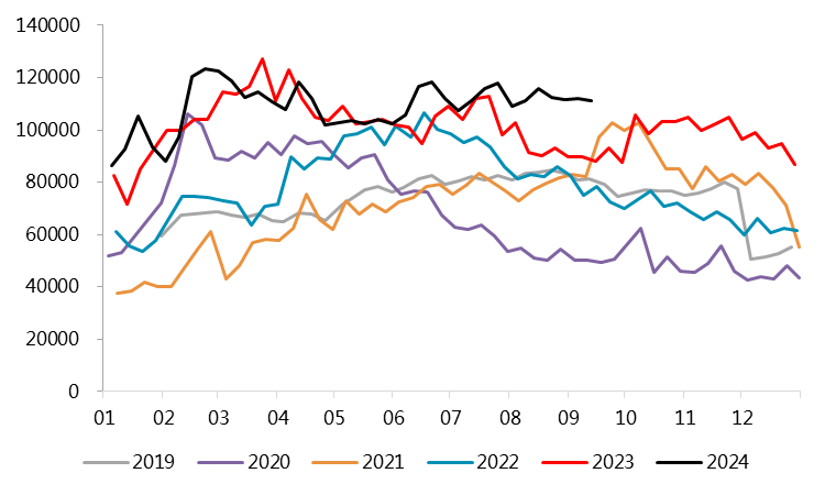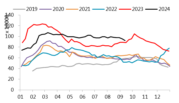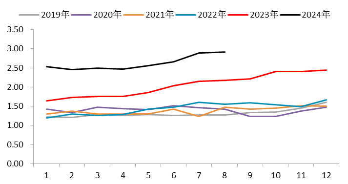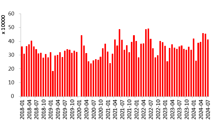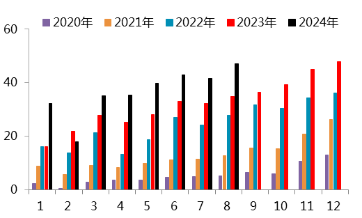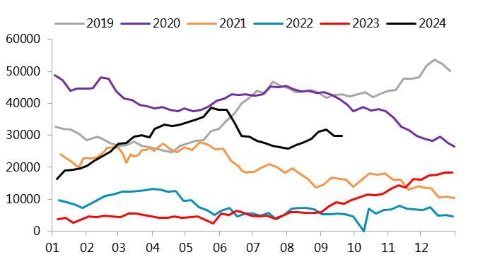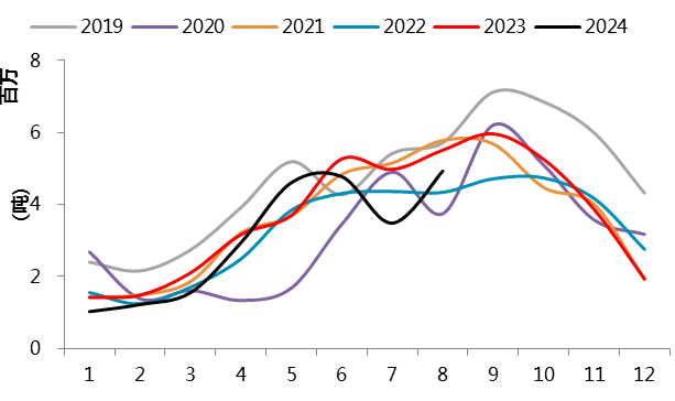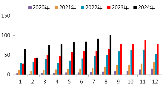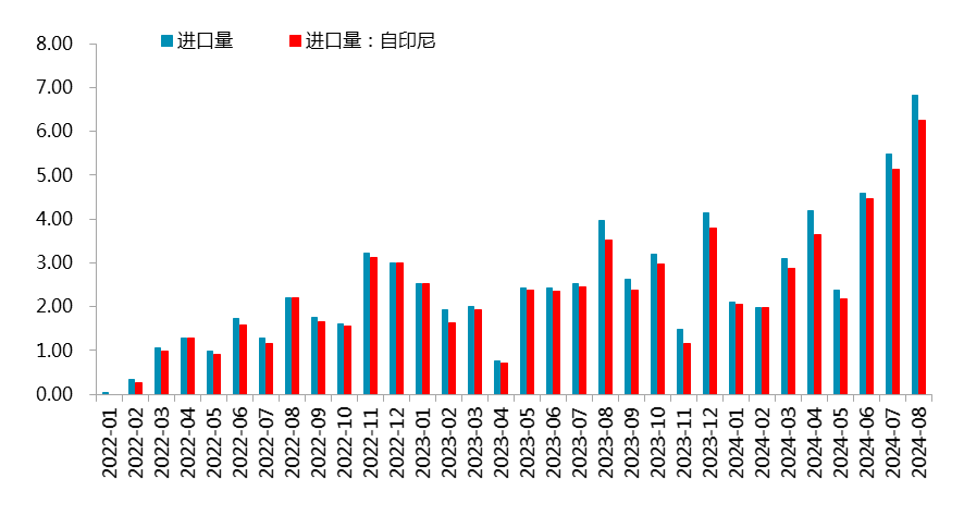 印尼方面,8月产量41.8万吨,环比增长10.29%,同比增长11.47%。预计1-9月份累计产量373.44万吨,同比增长26.42%。