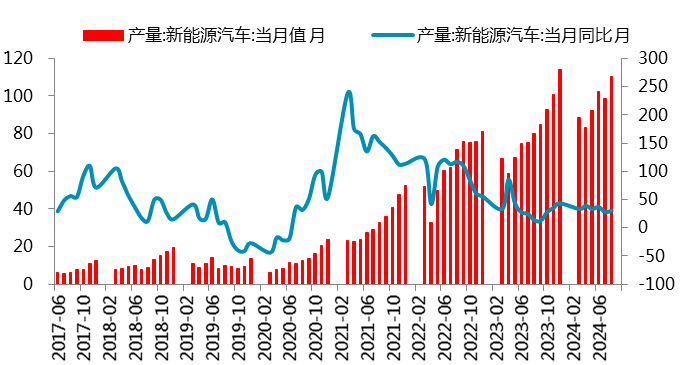据中国汽车工业协会统计,8月我国汽车产销分别完成249.2万辆和245.3万辆,环比分别增长9%和8.5%,同比分别下降3.2%和5%;1-8月,产销分别完成1867.4万辆和1876.6万辆,同比分别增长2.5%和3%,增速较1-7月收窄0.9和1.3个百分点。其中,新能源汽车8月产销量分别完成109.2万辆和110万辆,同比分别增长29.6%和30%,新能源汽车新车销量达到汽车新车总销量的44.8%。1-8月,新能源汽车产销分别完成700.8万辆和703.7万辆,同比分别增长29%和30.9%,新能源汽车新车销量达到汽车新车总销量的37.5%。
