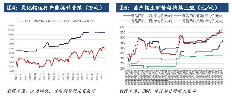在传统“金九银十”旺季消费效应以及宏观氛围好转带动下,有色金属自九月中旬起普遍走出触底反弹态势。尤其在九月下旬美联储开启超预期降息50bp,我国央行紧跟宣布降准、降息、调降存量房贷利率等一系列刺激政策后,市场情绪被彻底点燃,氧化铝以及电解铝跟随股市、大宗商品齐齐飞涨。氧化铝期货价格更是在基本面供应偏紧和需求支撑叠加价格弹性偏强的背景之下,本轮涨幅尤为显著。截至10月11日晚间,氧化铝主力合约价格盘中最高已经触及4778元/吨,涨幅高达6%以上,持续刷新上市以来高点,持仓量更是连日增加2万余手已至28万手上方,显示资金热情持续高涨。