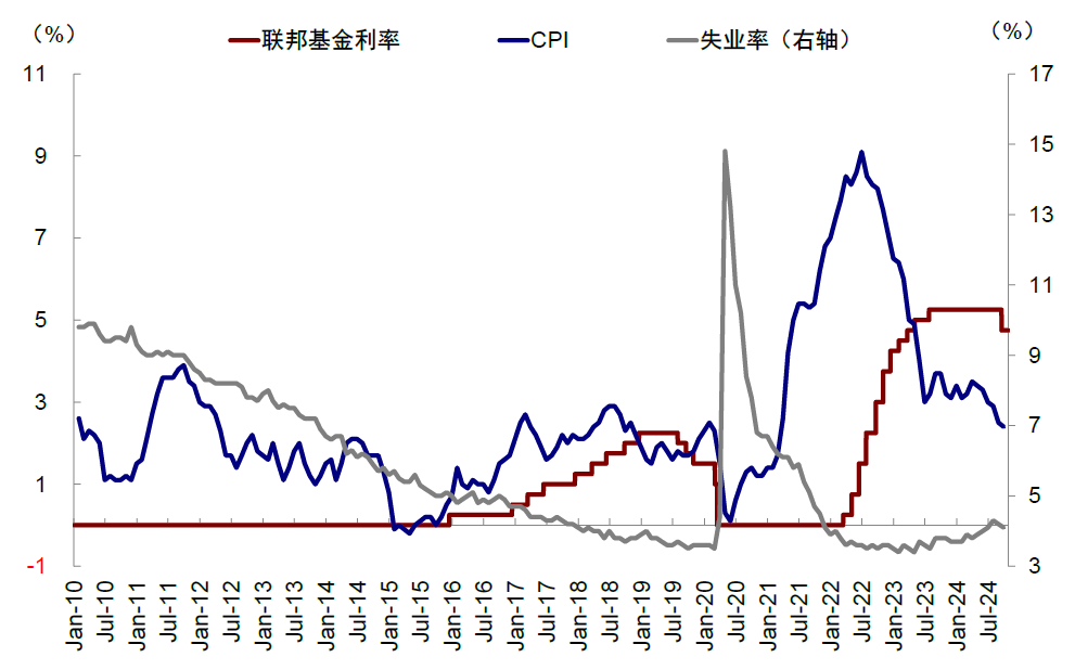美国的宏观周期位置不同:2016年美联储处于加息周期,彼时经济增长较为强劲但通胀压力并不大,美联储的加息是渐进式的将货币政策从2008年金融危机后的超宽松状态调整到正常水平。2017年初伴随通胀回落,美联储还短暂的停止了加息。当前货币政策处于降息周期,虽然经济基本面仍较为稳固,但通胀问题并未完全解决。因此从这个角度看,降息+特朗普政策的组合可能对增长和通胀的影响与2016年不同,当前宏观环境下,特朗普政策可能带来相比2016年更大的通胀压力。
