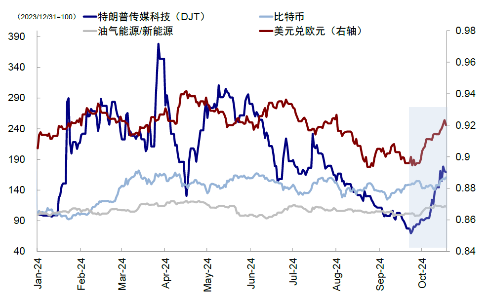 图表:当前市场已经对特朗普交易计入了较多的预期,如特朗普传媒科技、比特币、油气能源等