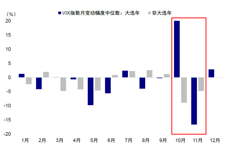 图表:VIX指数月度变化:大选年 vs. 非大选年