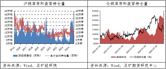 市场炒作风险可控。10月21日,沪铜主力合约持仓量11.9万手,一手5吨,上期所指定交割仓库铜库存16.8万吨,盘面持仓规模与交割库库存之比为3.5,处于历史偏低水平;LME3个月期铜持仓27.6万手,一手25吨,库存28.2万吨,月均可交割产量141万吨,未来3个月内持仓量与交易所库存和产量之和比值回升至1.53,综合考虑Cash/3M处于贴水状态,现货资源未出现明显紧张情况,市场炒作风险可控。