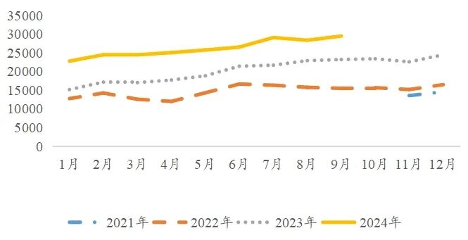 产量方面,精炼镍供应维持增量, 2024年9月,我国精炼镍产量为2.9万金属吨,环比增加4%,同比增加27%;2024年1-9月,我国精炼镍累计产量为23.6万金属吨,同比增加34.8%。新增产能方面,今年我国有伟明及聚泰两个精炼镍项目计划投产,印尼有永恒项目计划投产。