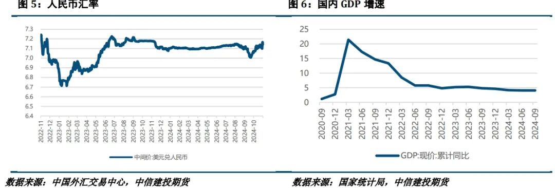 上周最重磅的事件无疑是美国大选,11月6日,特朗普宣布其在2024年美国总统选举中获胜。美国大选的尘埃落定消除了市场一大不确定性,各类资产也因此波动加剧,其中贵金属板块因市场风险偏好的回升迎来阶段性压力。美国大选给贵金属带来的影响主要在于新一届政府的经济政策、外交政策等方面。由于特朗普主张降低利率、对内减税、对外加征关税以提振经济,或使得经济好转,从而阶段性施压贵金属,但与此同时,由此增加的财政负担可能增添通胀压力,长线对贵金属仍然利多。外交方面,特朗普承诺将缓和与俄罗斯关系,并结束俄乌战争,但巴以冲突方面坚定支持以色列,这也代表着地缘政治风险将趋于下降,同样对贵金属形成阶段性利空。不过,特朗普的政策主张究竟何时能够落实,以及落实的程度如何,仍留待其上任之后进一步观察。