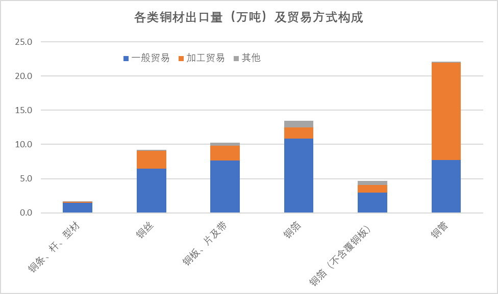 取消出口退税清单铜材产品2023年出口贸易方式构成(万吨)
