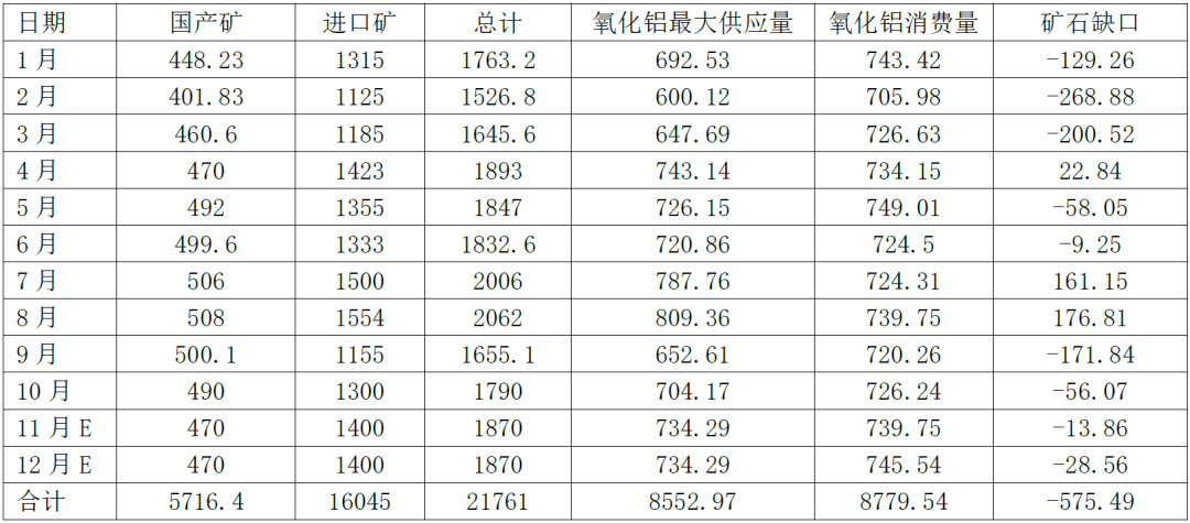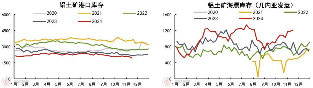 我国铝土矿的对外依赖度在逐步提升,截至去年已经达到了86%,而进口的铝土矿中约有70%来自于几内亚。目前几内亚雨季已经结束,矿石发运开始回升,但铝土矿发运量较往年同期并未有明显的增量;且由于政治问题,GAC被限制出口铝土矿的问题仍在持续,预计短时间内双方难以达成一致,甚至有无法发运的风险,而GAC去年出口往中国的铝土矿量大概在700万吨左右,约占到几内亚出口至中国总量的14%,因此当前几内亚矿石的发运情况并不稳定。