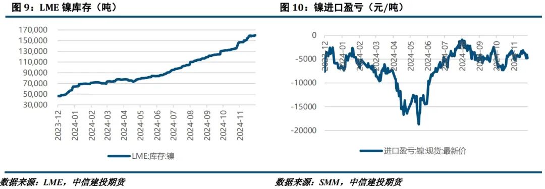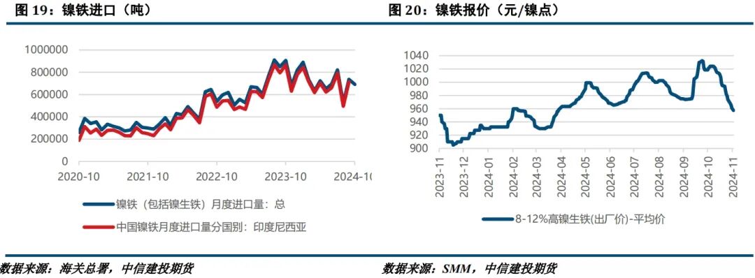 本月镍铁价格下跌。本月初镍铁环节挺价,一度带动市场情绪好转,不过钢厂接货力度有限,导致镍铁挺价未能持续,且印尼镍矿供应担忧缓解持续对铁价施压,导致随后镍铁价格连续走跌,铁厂亏损扩大。总的来说,矿端支撑减弱叠加需求未见反转,后市铁价或偏弱运行。