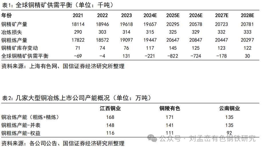 长单加工费下降主因冶炼产能集中投产,冶炼环节相对过剩。近几年是国内外铜粗炼产能的集中投放期,根据上海有色网的统计,2025年将有182万吨铜粗炼产能投产,远超过铜精矿的增量。由于新增铜粗炼产能要么依托大型矿山就地建设,如自由港印尼项目或者Kamoa冶炼厂,要么位于沿海地区具备区位优势,如铜陵有色新材料项目或者金川防城港项目。新增项目成本低,在精矿供应不足的情况下,要通过压低加工费迫使高成本的老旧冶炼产能减产,改变铜精矿供需失衡现状。