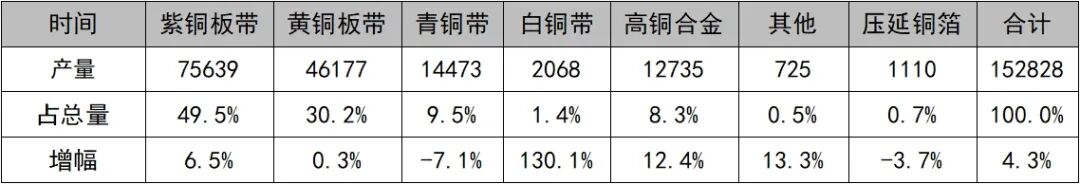 表1 2024年11月份调研企业铜板带产能产量数据 单位:万吨