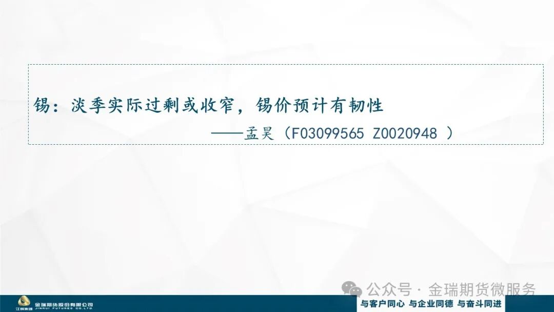 锡:淡季实际过剩或收窄,锡价预计有韧性