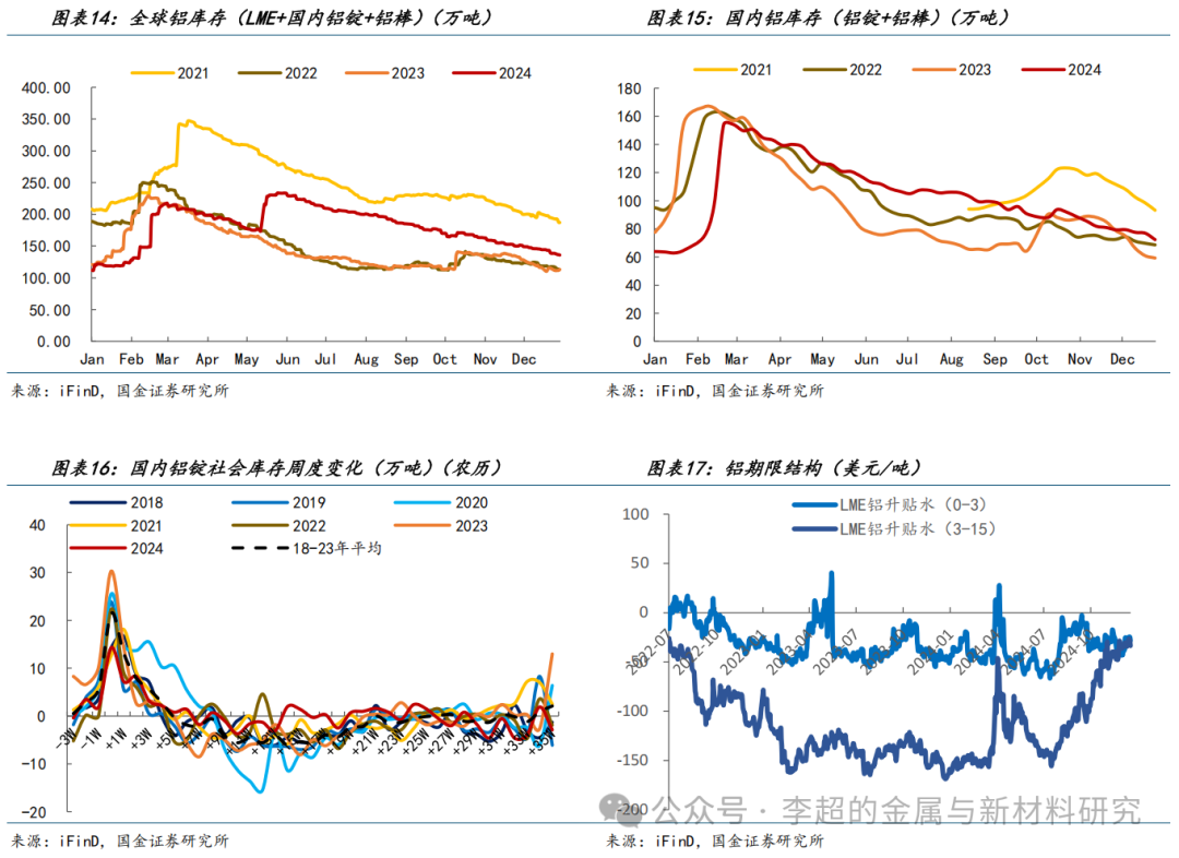 上周LME铝-2.46%至2494美元/吨,沪铝价+0.23%至1.98万元/吨。全球铝去库1.29万吨至134.17万吨。LME期货0-3贴水增加0.22美元/吨至-28.34美元/吨,LME期货3-15贴水增加0.81美元/吨至-33.57美元/吨。