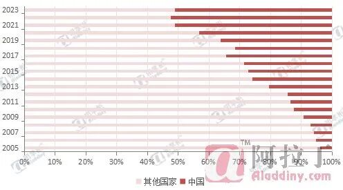 以上,主要得益于近年来我国不断推动使用自动化技术,不仅生产效率得到大幅提升,从而使得我国成为全球最大机器人消费国。据工信部数据显示,截至2024年7月,我国持有的机器人相关有效专利超过19万项,占全球比重约三分之二。我国已连续11年成为全球最大工业机器人市场,近三年新增装机量占全球一半以上,工业机器人产量也在不断向上攀升,从而带动铝材的消费量。