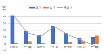 据中国海关数据统计,2024年1-12月,中国精炼镍累计进口量9.73万吨,同比增加6154吨;2024年1-12月,中国精炼镍累计出口量12.27万吨,同比增加86055吨,增幅234.96%。2024年全年中国电镍净出口2.54万吨。