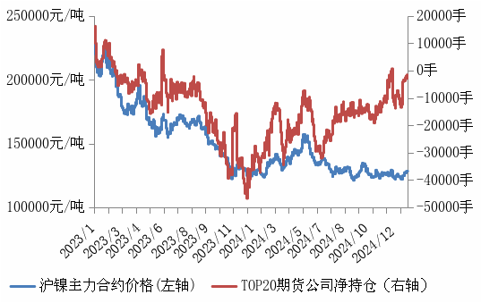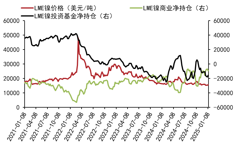 国内主力和国际金融资本维持少量空头敞口。1月17日,沪镍持仓量TOP20期货公司持有净空头1369手,近期始终维持少量空头敞口;伦镍商业机构持有净空头17459手,较上月同期空头敞口扩大8171手;投资基金持有净空头8977手,较上月同期空头敞口收缩7057手。
