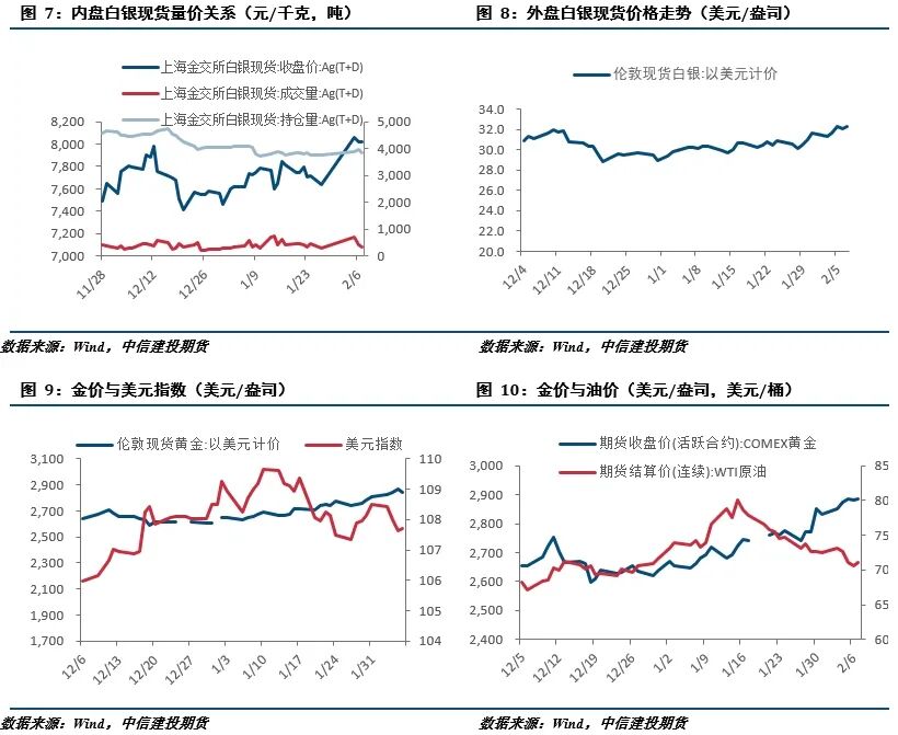 截止2025年2月7日,SPDR 黄金 ETF 持有量为868.5吨,较上周增加3.73吨,截止2025年2月4日,COMEX 黄金非商业多头净持仓为302508张,较上周增加3099张。