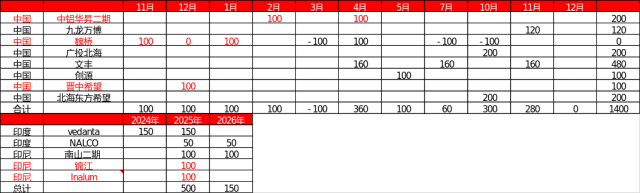 目前较为明确的已投产项目包括:广西华昇二期第1条线100万氧化铝在春节期间已投产,魏桥新线200万吨都已经贯通,此前晋中希望100万吨的复产;海外有两个项目投产,锦江的100万吨以及Inalum的100万吨。随着氧化铝厂利润的快速收缩,后续投产进度仍需重点关注,因为当前价格基本上触及到了山东地区的氧化铝现金成本线。