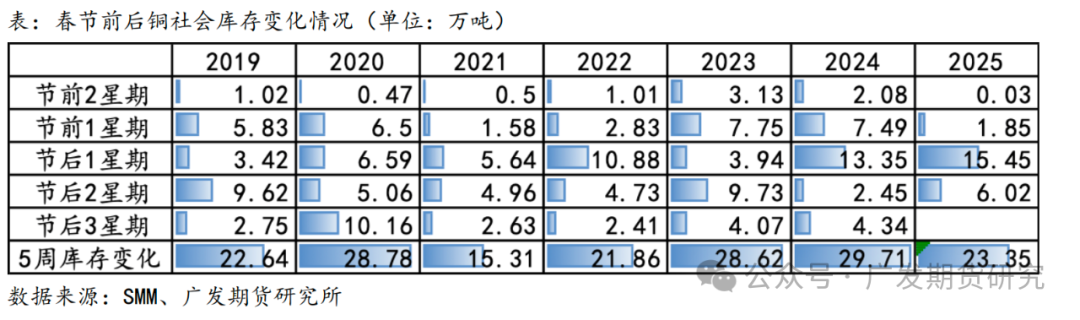 2025年1月1日至2月17日,COMEX铜、LME铜和SHFE铜分别实现涨幅14.18%、6.84%、4.42%,COMEX铜涨幅显著高于LME铜、SHFE铜。COMEX铜受美国加征进口关税预期直接驱动,因而涨幅最为明显。COMEX铜上涨对LME铜价的驱动可从套利角度解释,COMEX铜和LME铜交割品存在重叠,以往一般情况下二者接近平价,年初以来由于美国拟对进口铜加征关税的预期,套利者自LME采购铜运送至美国,助推LME铜价上涨。SHFE铜涨幅弱于COMEX铜和LME铜,原因或在于:(1)SHFE铜与COMEX铜交割品不一致,而LME铜与COMEX铜交割品存在重叠,COMEX铜的直接套利对象为LME铜,因此SHFE铜受到COMEX铜套利驱动的影响弱于LME铜;(2)春节假期后国内铜基本面供需双弱,对价格大幅上行的驱动有限,据SMM,节后铜下游需求尚未全面复产复工,短期内国内铜现货市场活跃度较弱,节后铜累库情况亦略高于往年同期,需求及库存对SHFE铜提供的价格弹性有限。