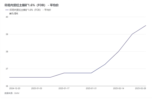 从印尼矿端内贸实际情况来看,矿端阶段略偏紧。据SMM,2月末3月初延续了2月18-19美金的印尼内贸矿升水,3月印尼镍矿主流升水或迎来再次上涨。大K岛园区目前暂定三月份镍矿采购意向价格为19-20美金以上,但大多数腰部火法冶炼厂原料库存仍未达到安全水位,因此,对20美金以上的升水有一定的接受度。矿山在配额有限情况下,倾向于优先出利润较好的火法矿。3月开始,苏拉维西雨季逐渐结束,陆续开港后,预期后续出货量会增加。印度尼西亚镍矿商协会(APNI)发布2025年3月的镍矿内贸基准价格,3月的参考价格为15306.52美元/湿吨,较2月参考价15276.11美元/湿吨上涨约0.2%。其中:NI1.6%MC35%FOB为27.01美元/湿吨,较2月基价上涨0.05美元/湿吨