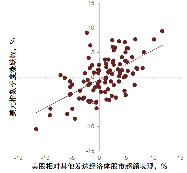 图16: 美国相对其他发达经济体涨幅与美元涨幅相关性较高