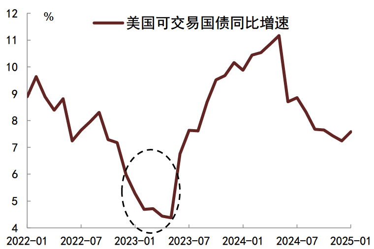 图14: 2023年上半年,美国可交易国债规模增长明显放缓,直至6月债务上限问题解决后重新抬升