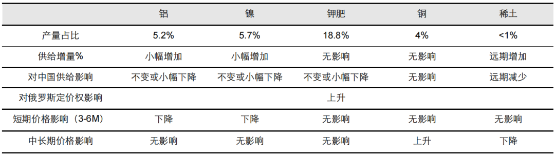 图表19:全面取消对俄贸易与交易制裁对关键金属品种影响