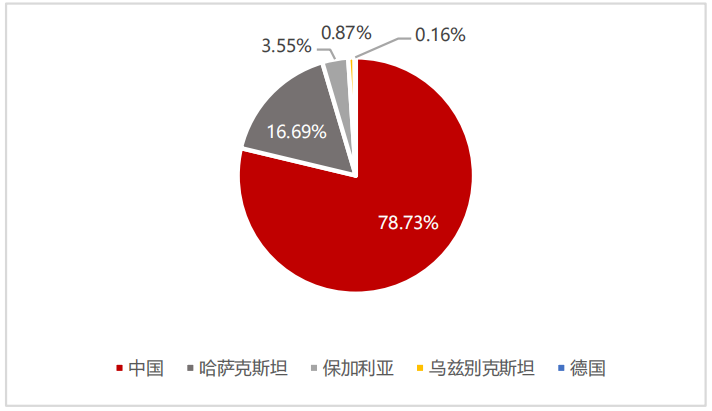 图表11:俄铜主要出口国为中国和哈萨克斯坦,占比超95%(2021年)