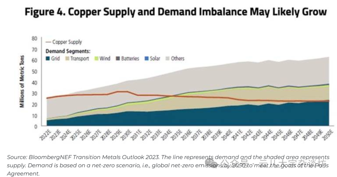 全球多家权威机构证实,铜行业需要大规模投资 以满足未来需求。据彭博新能源财经发布的年度《转型金属展望》(Transition Metals Outlook),到2050年,铜行业需投入2.1万亿美元 以满足全球“净零排放”(Net-Zero Emissions)世界的原材料需求。