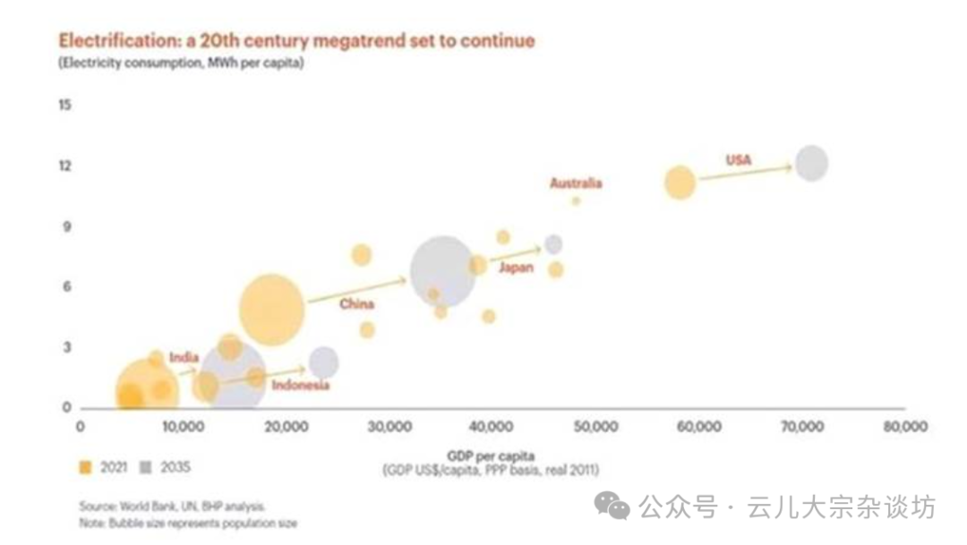 “展望 2050年,我们预计全球铜需求将 增长70%,达到 每年5000万吨。这将受到铜在当前及新兴技术中的关键作用,以及全球脱碳目标的推动。”——必和必拓(BHP)首席商务官 Rag Udd 表示。