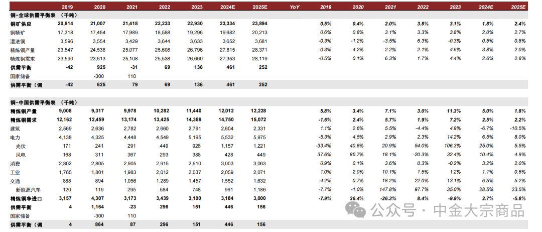 图表:全球铜供需平衡表2025E