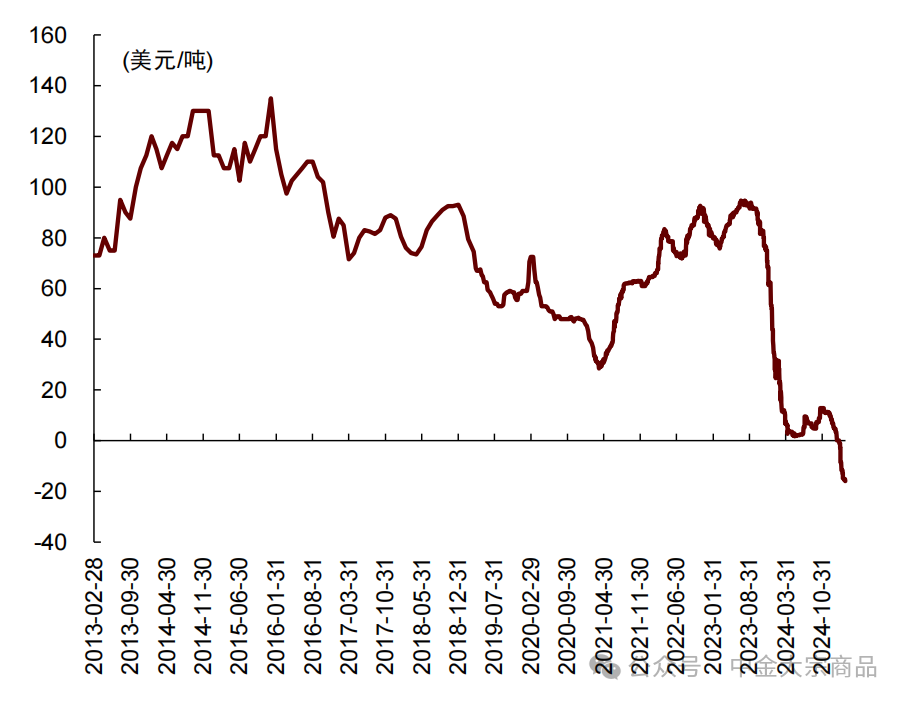 但贸易摩擦加剧弱化了废铜的供应条件。一方面,贸易商担忧2018年贸易摩擦期间中国对自美国进口的铜废碎料加征高达25%关税的历史重演。另一方面,关税导致如今COMEX铜溢价处于高位,导致成本端以COMEX合约计价,而收入端以SHFE合约计价的废铜进口商从美国进口废铜的意愿大幅降低。作为我国最大的废铜进口来源国,2024年我国自美国进口44万吨,占全部进口比例的19.5%,占废铜供应比例的约8.3%。我们认为如若废铜进口持续受到影响,或致使冶炼端减产风险加剧。