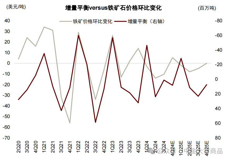 图表:铁矿石增量平衡与铁矿石价格