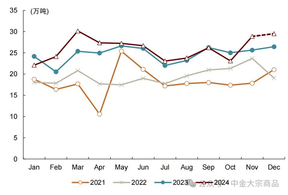 图表:2024年,中国再生铜产量仍在提升